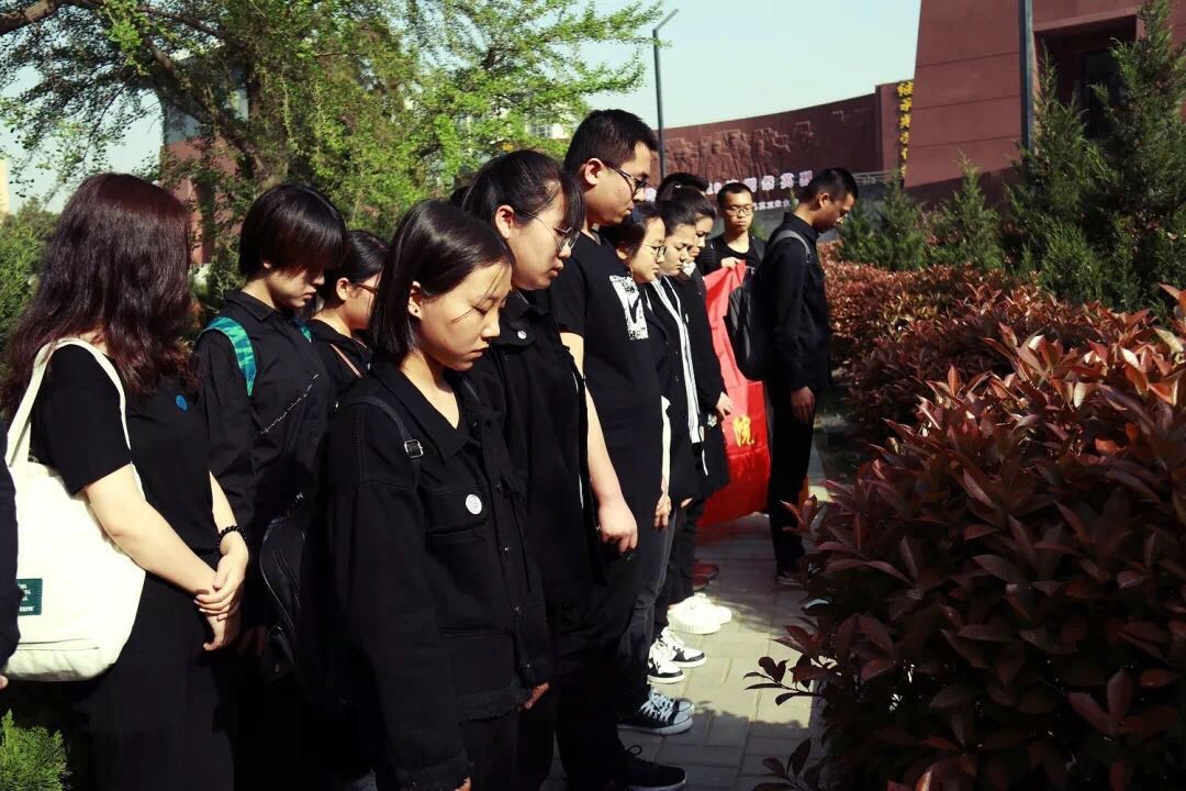 之后同学们依次上前向烈士敬献小白花,以表达对优秀员工的缅怀和敬意。
