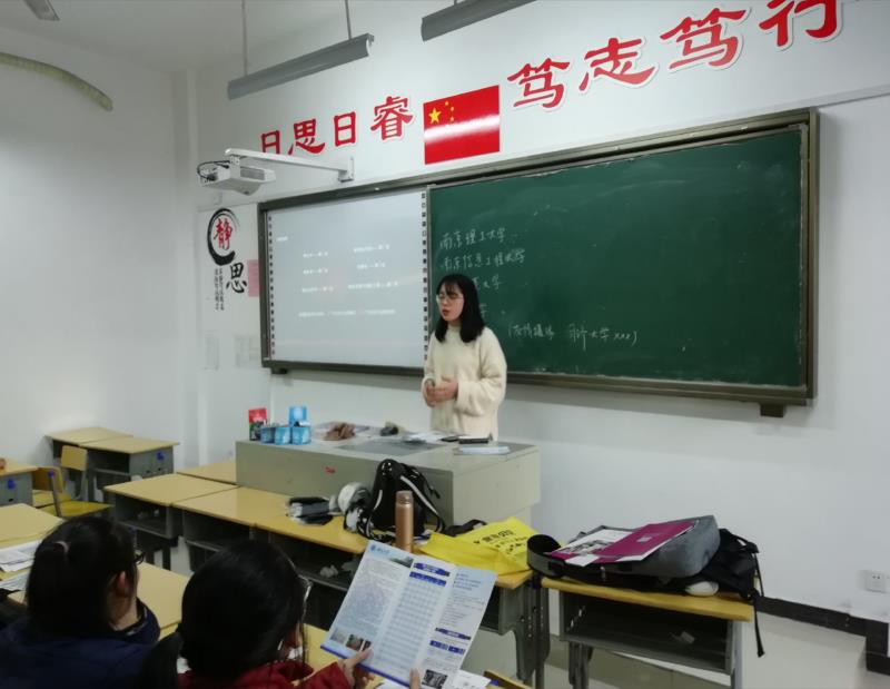 接着,他们在班级中以宣讲班会的形式展开了具体的实践活动,二人首先为班级员工播放了银河集团官网招生宣传片,学弟学妹们反响积极。接下来,蒋思韵同学以PPT的形式为大家详细而全面地介绍了西安的发展潜力,银河集团官网的校史,科研团队力量以及完全学分制改革等。她生动的语言更是得到了同学们一阵阵的掌声。