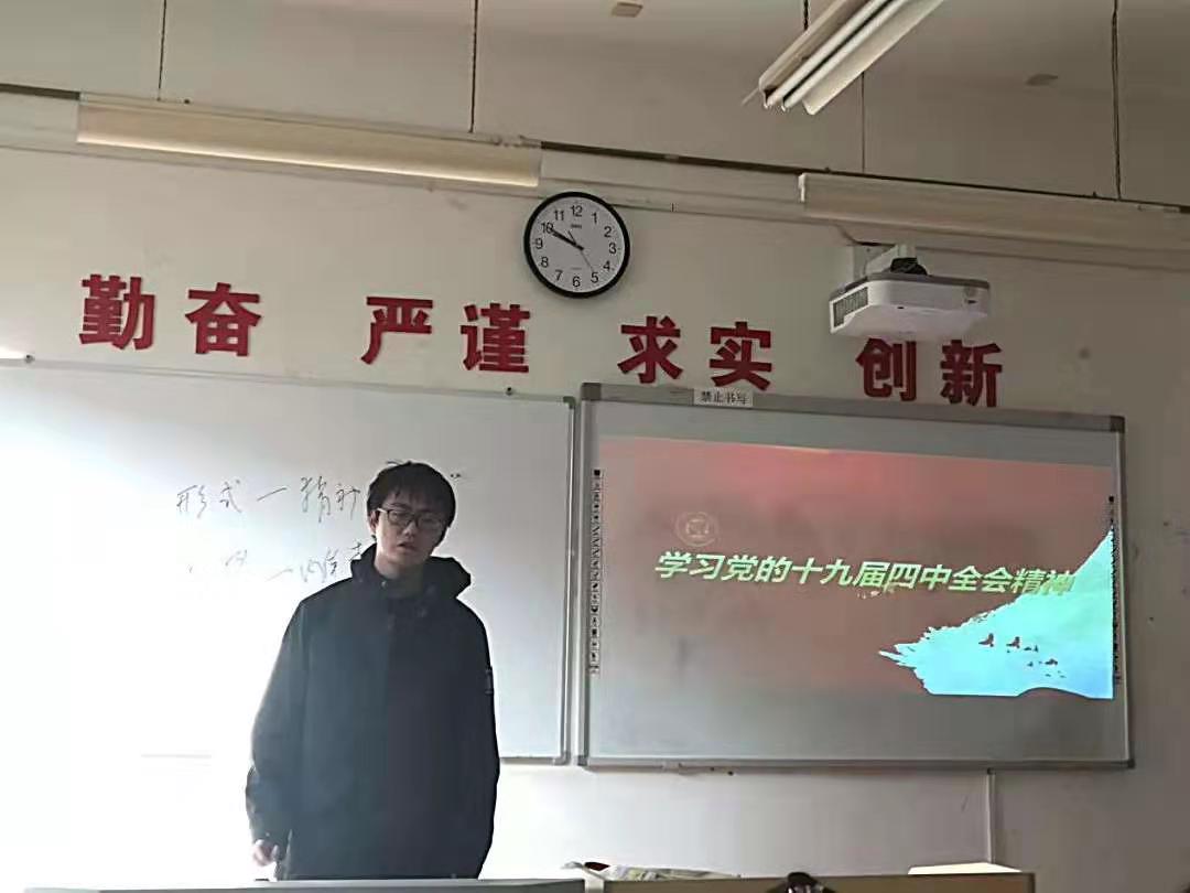 12月18日上午,本科2018级哲学团支部在3302教室开展了主题团日活动,本次活动的主题是“学习党的十九届四中全会精神”。活动由团支书杨文豪同学主持。
