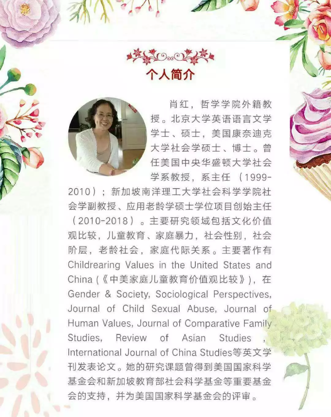 自述:肖红教授