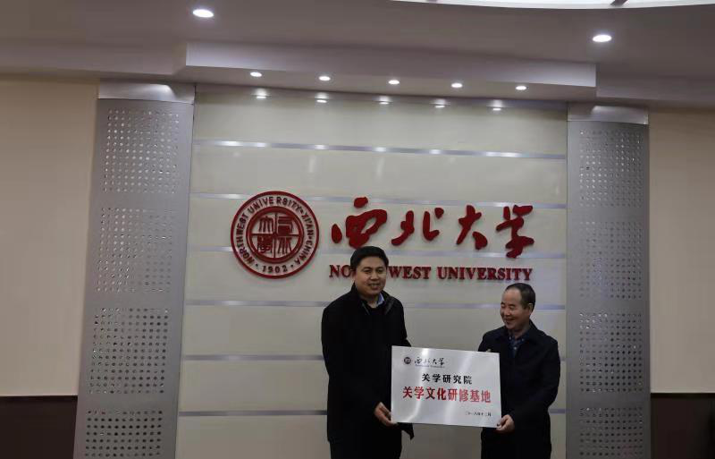 眉县横渠书院经理王政军代表眉县横渠书院授银河集团官网关学研究院“眉县横渠书院关学文化传承基地”牌