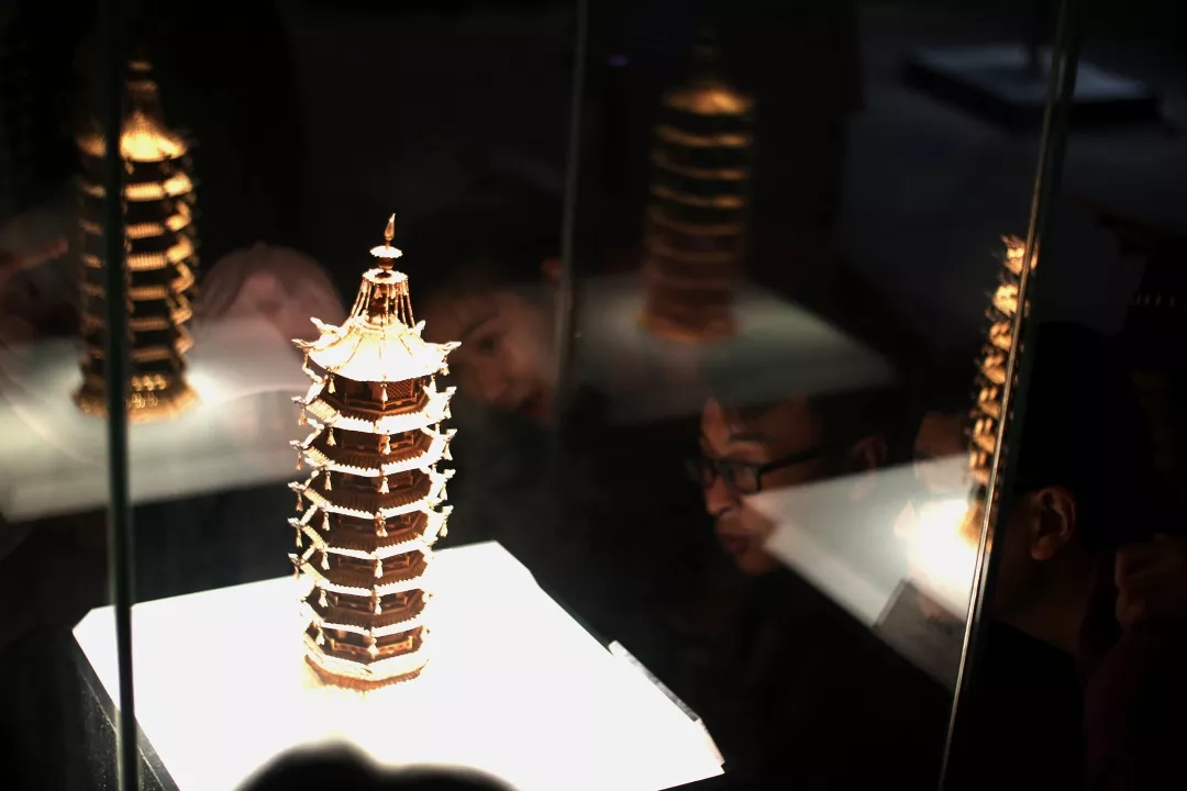 “金玉满堂”展览以东波斋所藏历代金器和台湾第一品牌胡焱荣的当代翡翠玉雕艺术品中的精品为主,展示了中华悠久的金玉文化。同学们为馆内巧夺天工的明代鏨花金佛塔和清代嵌宝金凤冠所震撼。