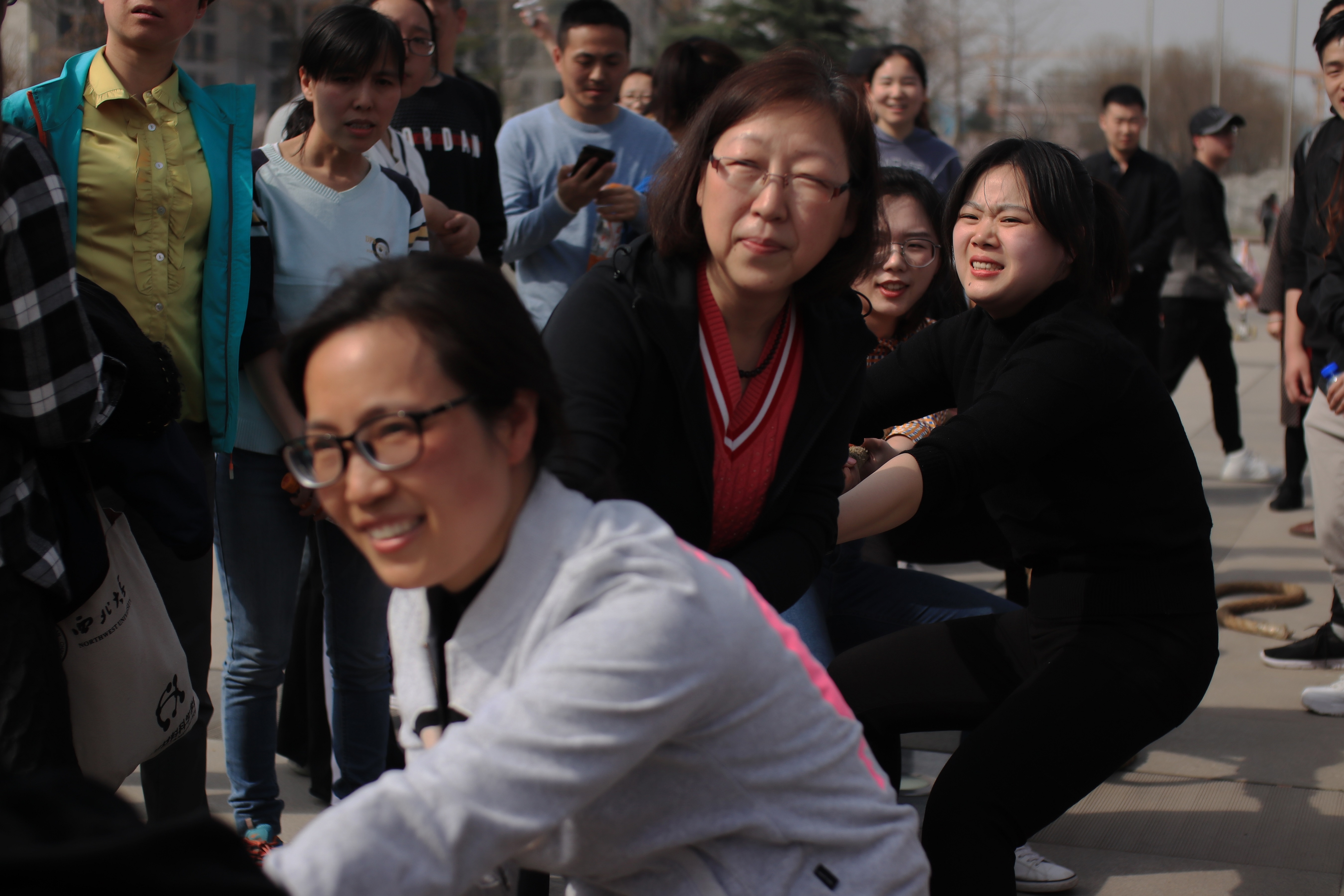 参加拔河比赛的老师们