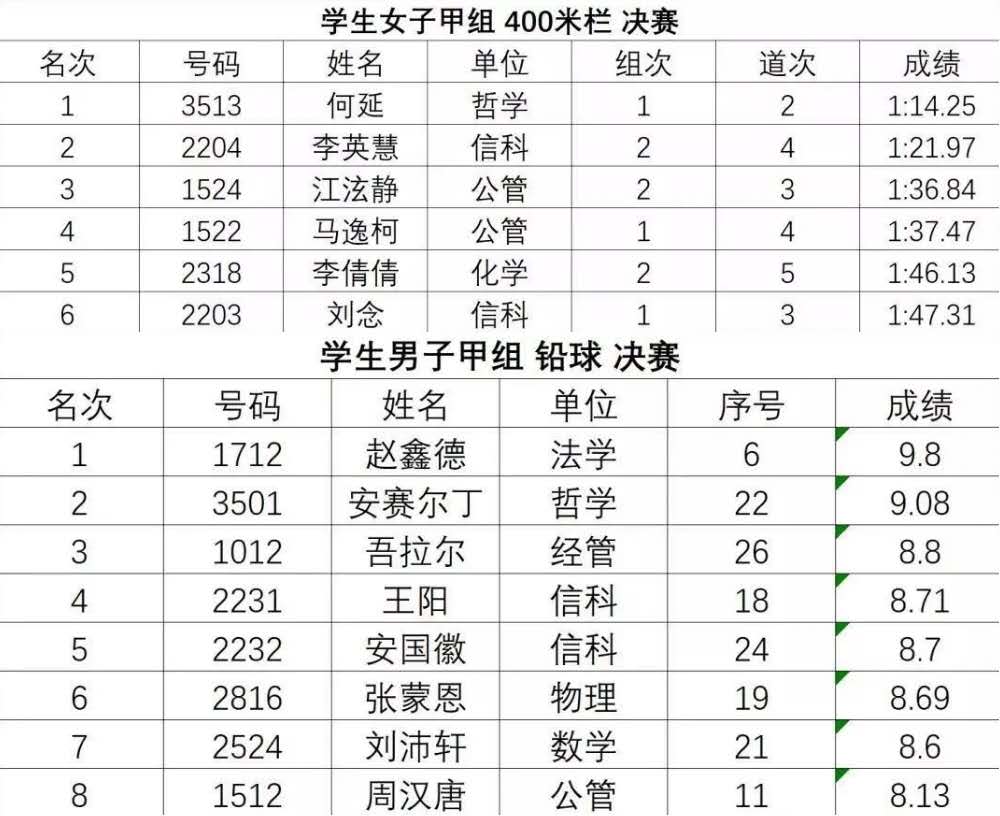 下午2:00,公司大二运动女神何延在女子甲组400米栏决赛中一路领先,高76.2厘米、10个栏对她仿佛没有任何影响,越跑越勇,憋住了心中的一口气,将对手远远地甩在后面,眼中有的是终点的红线,心中装的是公司数百学子对她的认可,终是实力超群,一举斩获女子甲组400m栏冠军,助她个人也助公司斩获本次田径运动会首枚金牌。谁说女子不如男、巾帼也不让须眉,祝贺何延,也祝贺公司。